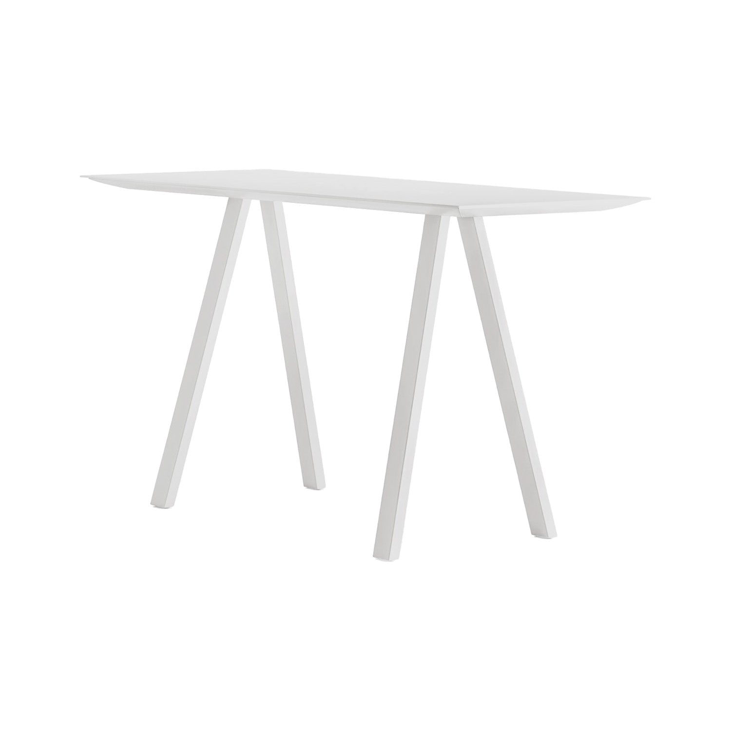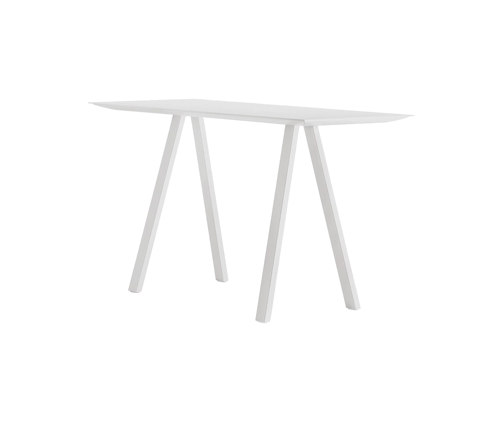 Arki-Table optimizes its ability to meet the needs of flexibility and functionality of modern offices and public spaces thanks to a version that make it perfect as a workstation, reading or consultation table. High table with steel trestle legs and top supported by an extruded aluminum frame. | 200 x 79 x h107cm | Legs: white powder coated steel | Top: white Compact full colour top | Arki Table Specifications