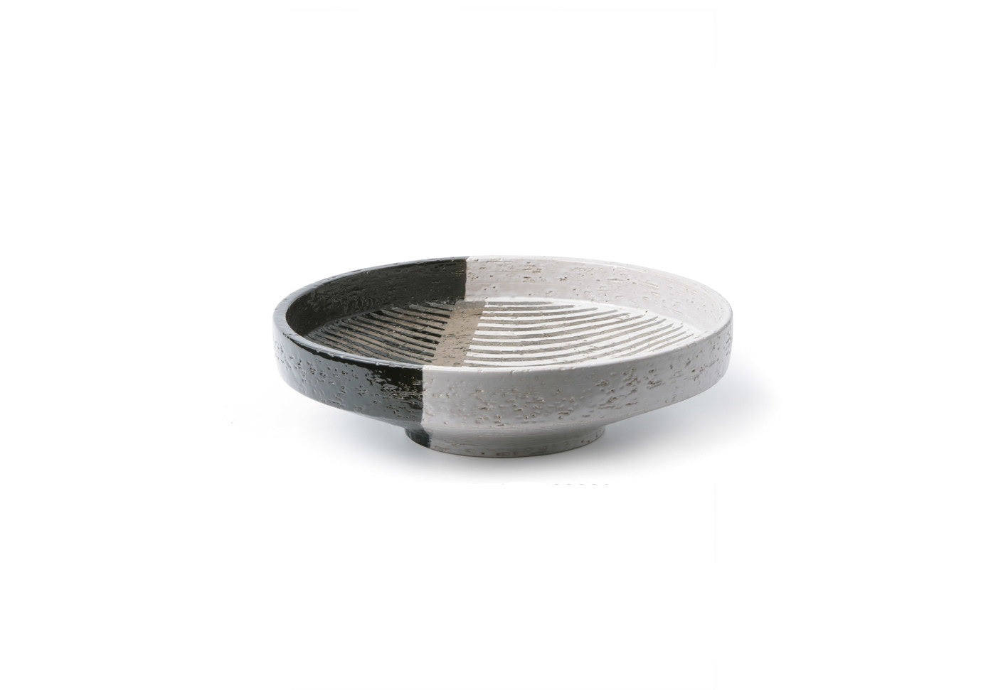 H 11,5 cm - ∅ 35 cm | Bowl with grid decoration. Hand-turned in red refractory clay, decoration with wax-brushed stripes over Semi-gloss black and white glaze.Year of production 1950 - Re-edition in 2006 - Limited Edition 199 pieces
