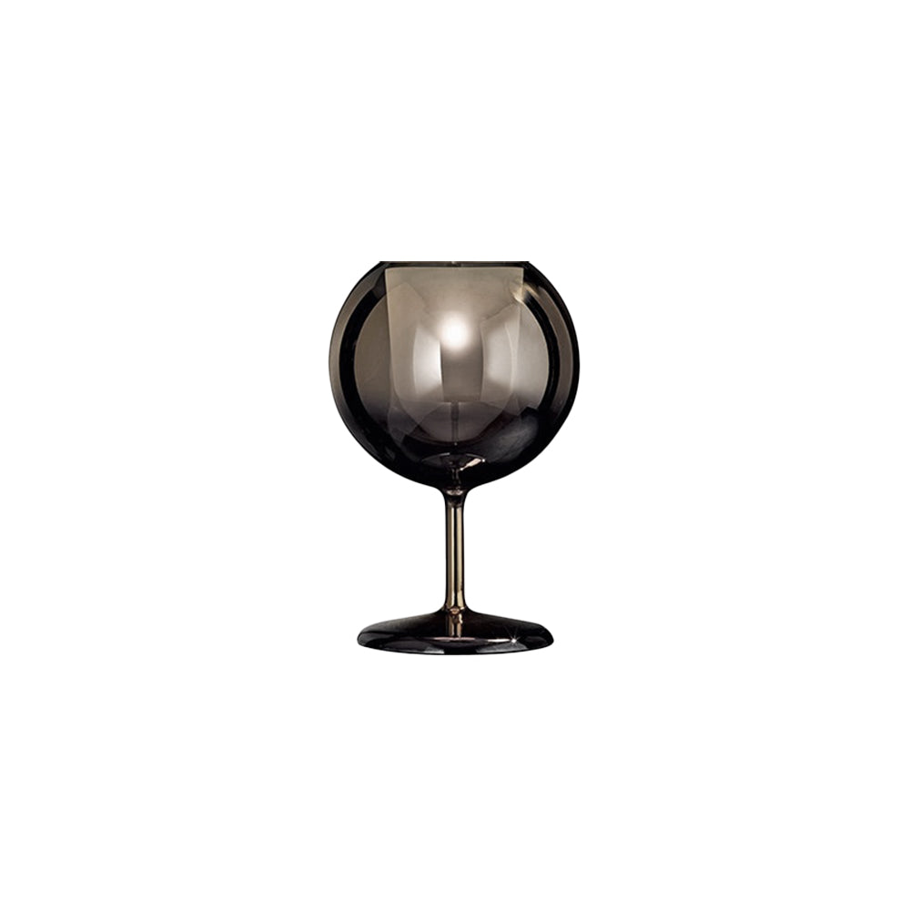 [Finishes: Black Mirroring Glass] | Glo Table light is an icon of our collection, a glass sphere enhancing the glare of light, in a game of reflections back and forth between the lamp and the space or among the very lamps. The rich palette of colours and the different dimensions of the suspension lamps are a toast to creativity. Lamps with chromed metal structure and borosilicate glass. | Ø25 x h42cm | Black mirroring glass | Glo Table Lamp Specifications