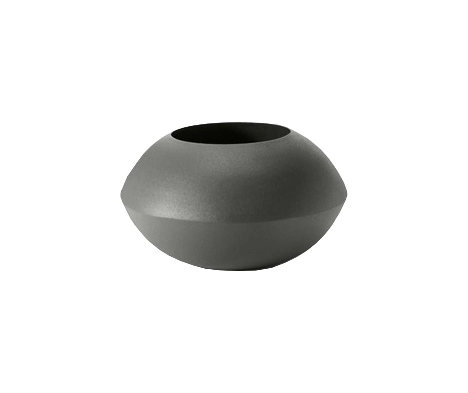 [Finishes: grey] | Finish: Powder coated steel grey | Dimensions: 18cm x 10cm | Amateur sci-fi enthusiasts with a keen sense of botany will get their money´s worth. The HOLM vase´s extraterrestrial design preferably accommodates dried decorative grasses and twigs, creating an exciting contrast between its futuristic body and the organic branching. Alternatively, HOLM is also ideal as a planter for kitchen herbs, lavender, cacti, and similar succulents. Thanks to the additional slate gray powder coating, the vase creates an accent in any contemporary living environment.