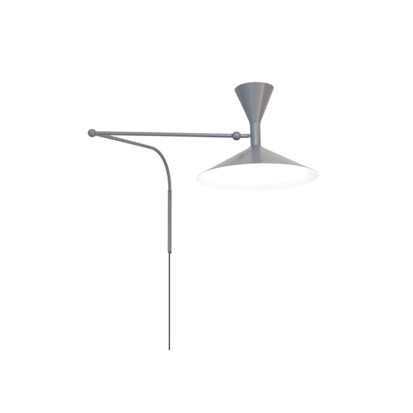 Designed by Le Corbusier for the Unité d’Habitation of Marseille in 1949/1952, it is an adjustable wall lamp with two joints on the arm and a rotating wall fixing. Also available in the MINI version with reduced dimensions. | Spun aluminum diffuser. Available with matt grey, whitewash or black body, with white internal diffusers.Direct and indirect lighting output. Double switch on the cable, for a functional and adjustable light output. | Finish: matt grey/whitewash(inside)/grey | Lampe de Marseille Specifications