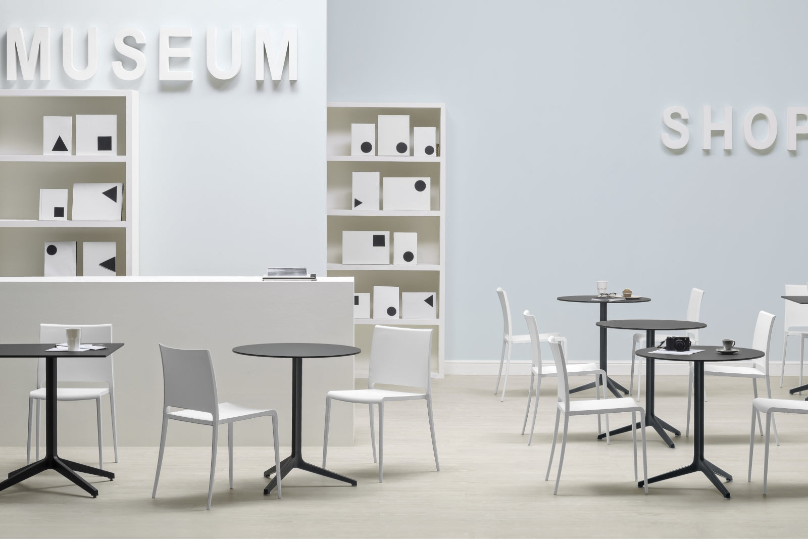 [Finishes: grey polypropylene] | Please note: Outlet items may be ex-showroom display or otherwise have imperfections and are sold in as is condition, please enquire for more information or to arrange a viewing. Terms and conditions apply. | Mya is a collection of seatings with a refined and filiform design. Chair with die-casted aluminium frame and polypropylene seat and backrest. | Mya Stacking Chair Specifications