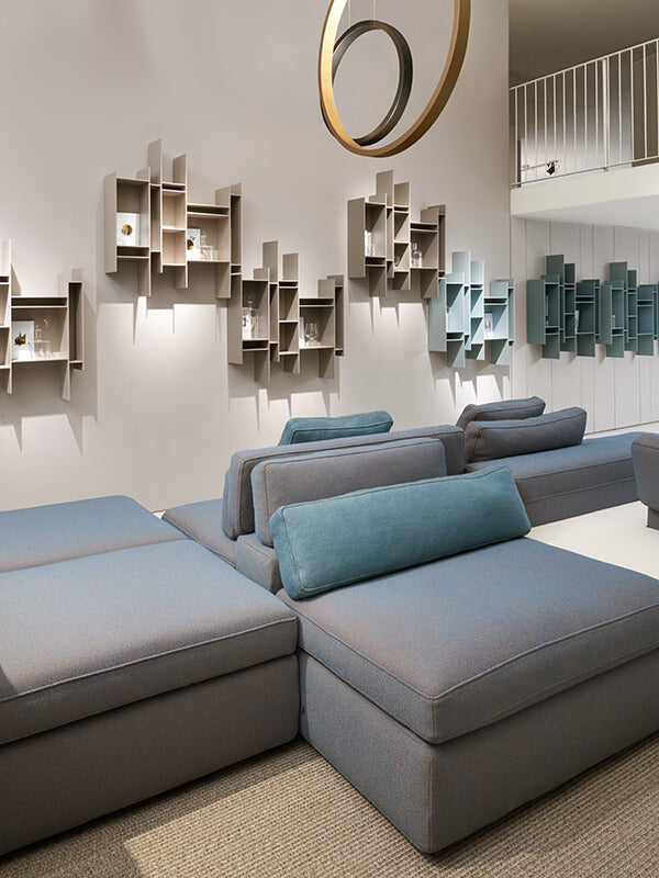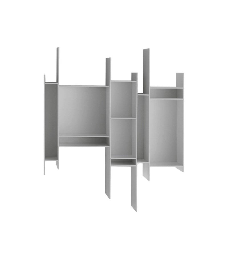 A graphic sign on the wall that catches the eye. A small but endearing hanging bookcase, able to confer dynamism to any environment and embellish it as an artwork. This is the main feature of Randomito, whose single and vertically reversible module can be used both individually and by aggregation, thus getting plenty of customized configurations. | 81.6 x 20 x h96 cm Finish: F059 medium grey | Randomito Hanging Bookcase Specifications