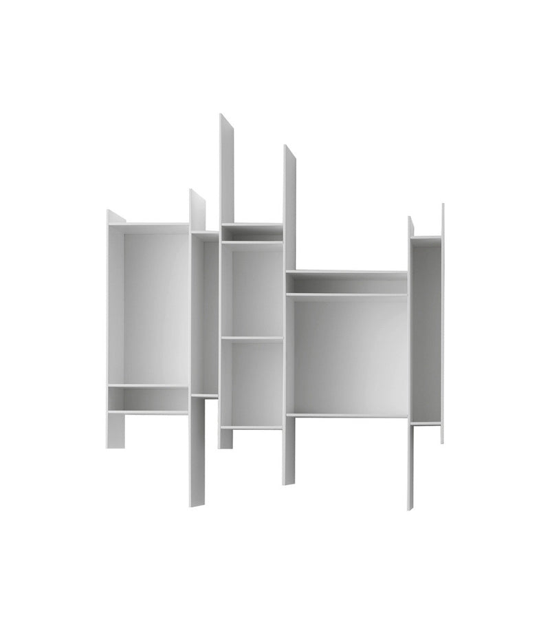 A graphic sign on the wall that catches the eye. A small but endearing hanging bookcase, able to confer dynamism to any environment and embellish it as an artwork. This is the main feature of Randomito, whose single and vertically reversible module can be used both individually and by aggregation, thus getting plenty of customized configurations. | 81.6 x 20 x h96 cm | Finish: F006 matt white | Randomito Hanging Bookcase Specifications