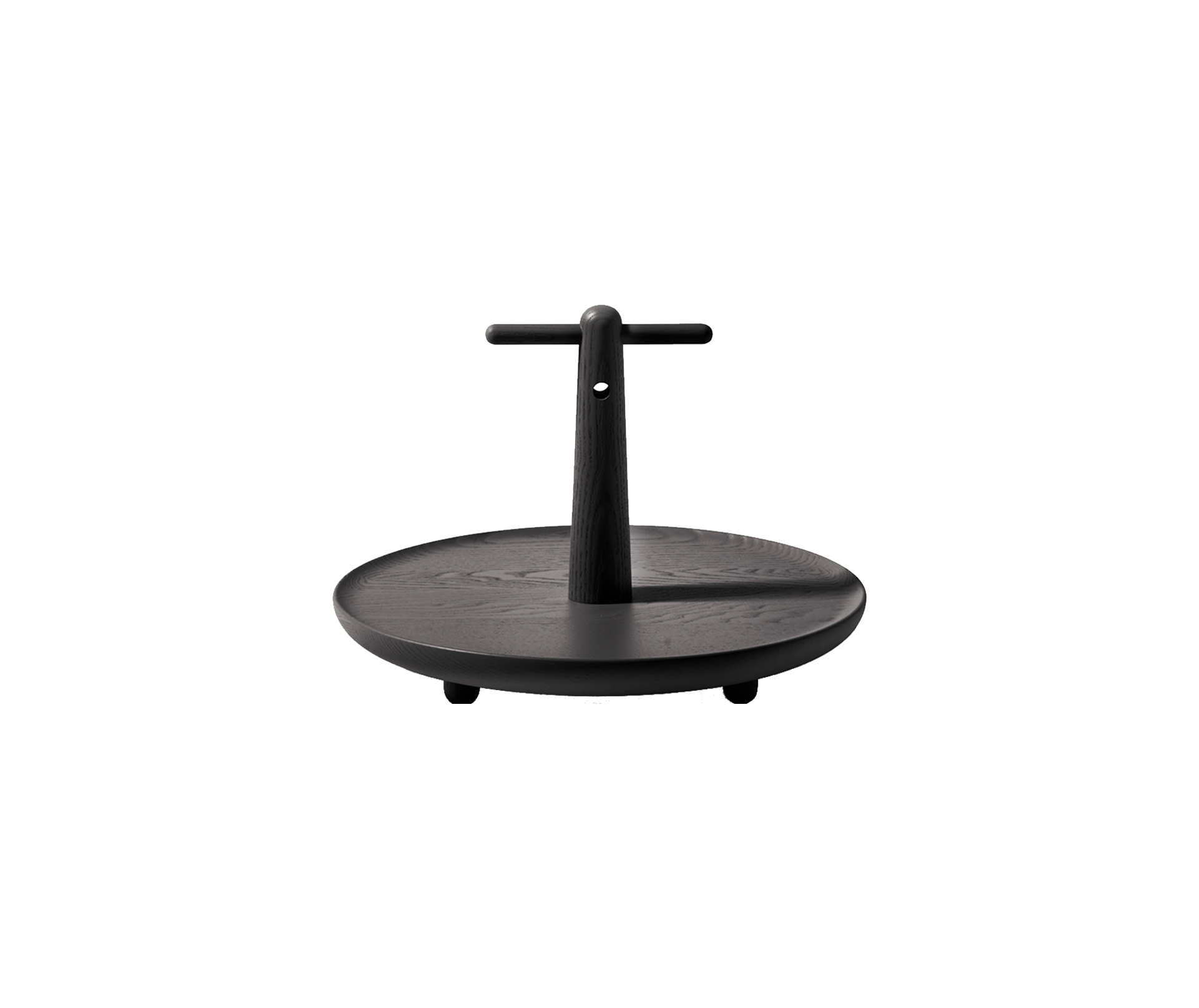 [Finishes: Black stained ashwood] | Reaction Poetique Handled Centrepiece Specifications | Jamie Hayon crafts a collection of minimalist, functional decor objects for the modern home, envisioned as a scrupulous dedication to the use of a single material. Sculptural elements embody form, light and shadow to express the sheer beauty of wood through the fine craftsmanship skills of the Cassina joinery. | Finish: Black stained Ashwood, 25cm H, Top diameter: 38cm