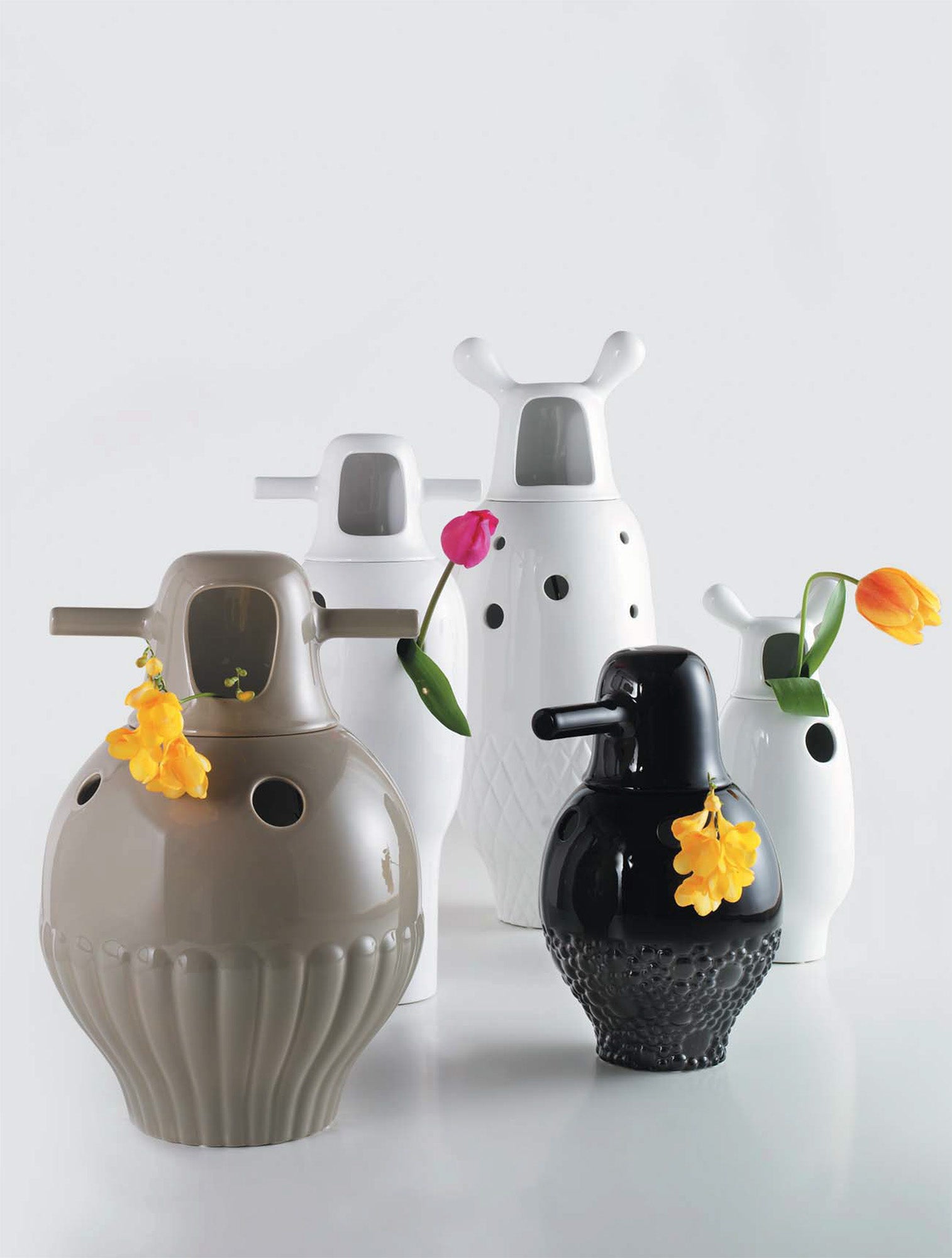 Please note: this item is ex-showroom condition, please enquire for further details. | The Showtime Vases are just as current as when launched over 10 years ago. They are little decorative sculptures that fully reproduce Hayon’s universe. | Int. / ext. white Ø27 x h.42 cm | Showtime Vase No.3 - white Specifications