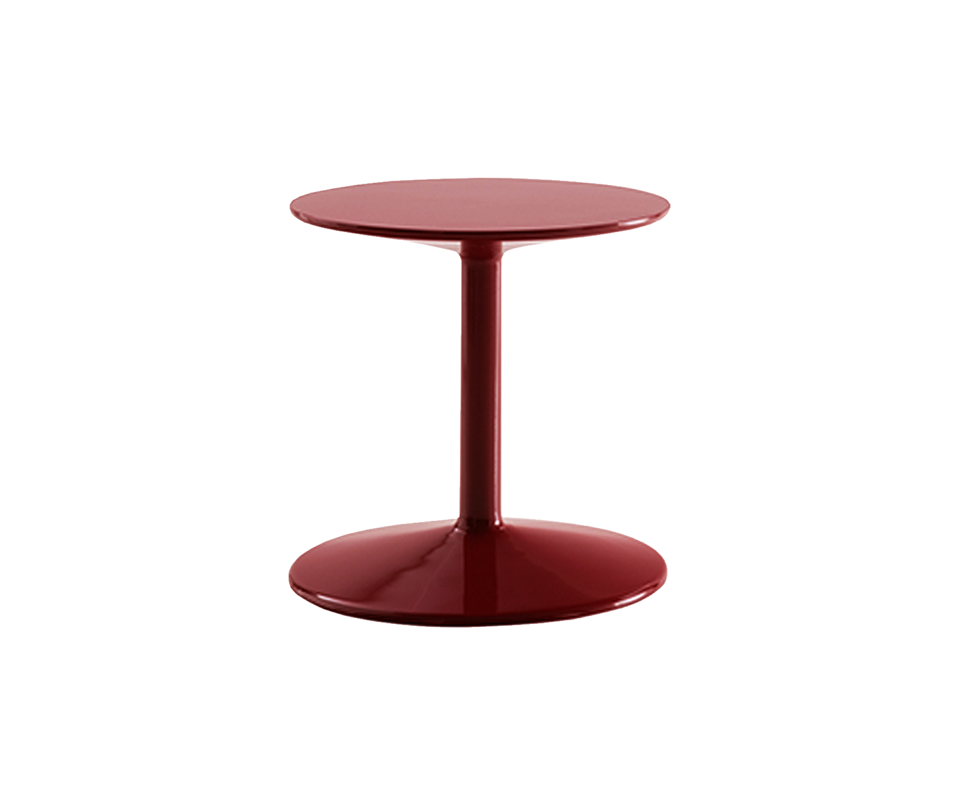 [Finishes: Glossy Brick Red] | Spool is a small table in printed and painted rigid polyurethane with a glossy finish which is available in a large range of colours. With its recognisable shape and strong tones, Spool is a lively punctuation that celebrates and enhances the eclectic nature of the Dock system. | Ø 40 x h44,5 cm Finish: Glossy brick red | Spool Table Specifications