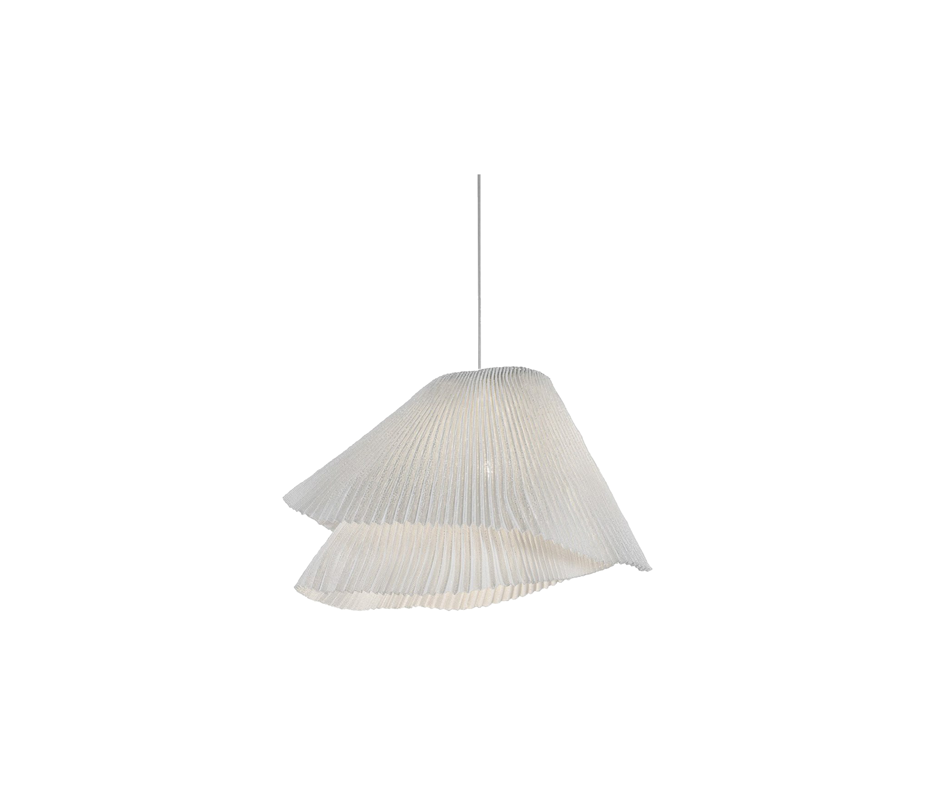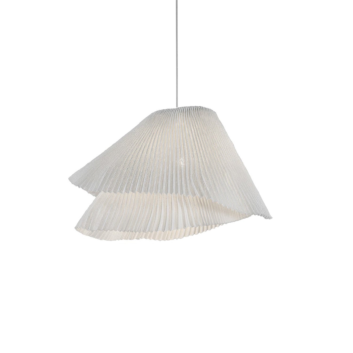 [Finishes: White Stainless Steel] | Tempo is a pendant lamp collection made with painted stainless steel mesh. This material, crafted in fine pleats, forms two overlapped layers that create two different lamps full of dynamism. Andante and Vivace, two liveliness shapes born from one. The representation of two instants generated by the same movement at a different tempo. | Tempo Vivace - transparent43 x 39 x h27 cmColour: whitePainted stainless steel mesh | Tempo Vivace Pendant TEVI04 Specifications