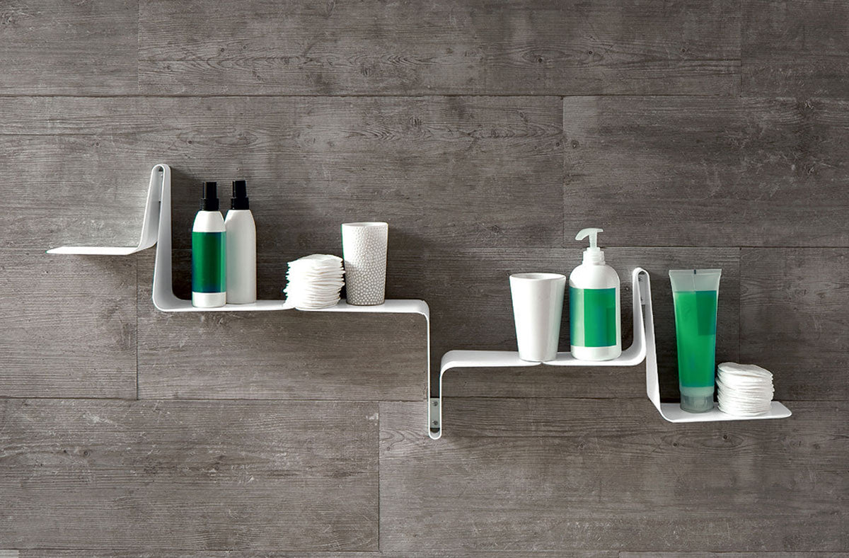 [Finishes: white] | The Tulip shelf with double leaning top is a versatile element, easy to install. Combining more than one piece, it is possible to create compositions with your own style to decorate the wall. | 37 cm W x 20 cm D x 11 cm HColour: white | Tulip Shelf Specifications